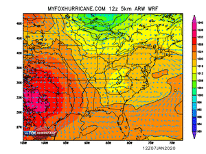 The Weather and Research Forecast Model (WRF) is a sister model to the Hurricane Weather and Research Forecast Model (HWRF). The WRF is the latest numerical program model to be adopted by the National Weather Service as well as the U.S. military and private meteorological services. There are two distinct varieties of this model. The advanced research version known as ARW is a very high resolution model used to find new ways to improve accuracy of hurricane forecasting.