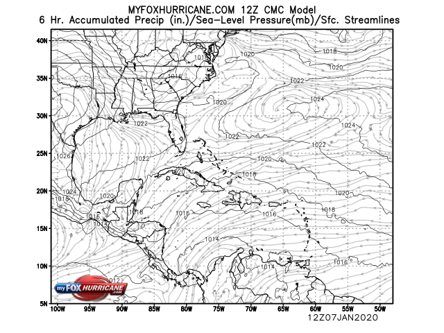 The Canadian Meteorological Center (CMC) produces a global computerized weather forecast model twice daily. The CMC model is global, as opposed to, the GFDL and WRF models which are regional models centered over North America. The CMC model is run through 240 hours.