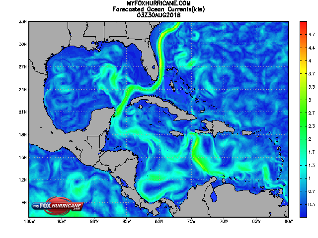 One application of this model is to determine the path of objects embedded in the ocean such as the path of oil in an oil spill. Another application is to assist in hurricane strength forecasting. Water temperatures are higher in the Gulf Steam. If a hurricane is forecast to pass over the warmer Gulf Stream water, it could have a major impact on the strength of the hurricane. Knowing the exact location of currents such as the Gulf Stream and its associated warm and cold eddies is important information that can, in turn, be used in hurricane strength forecast models.