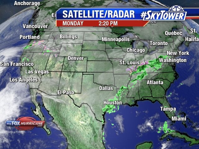 The satellite images on this map are from the GOES satellite. The GOES satellite is composed of sophisticated instruments for sensing various aspects of the Earth’s atmosphere and weather systems. Infrared satellite imagery on this map uses the temperature of the clouds themselves to display the image. The NWS network of Radars from around the country are combined to create an overlay depicting the location of rain and winter precipitation.